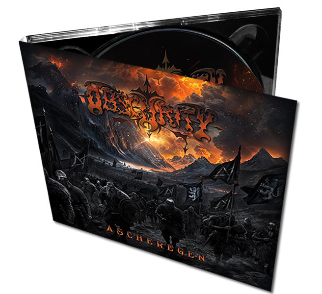In zwölf Kapiteln, vom bedrohlichen Auftakt 'Initium Dekadentiae' bis zu den letzten Klängen von 'Dystopie und Schwanengesang', verweben sich altnordische Mythologie, die gewaltsamen Schatten der Christianisierung und die Brüche unserer modernen Welt. Im Kern ist "Ascheregen" zugleich Klage und Aufbegehren - eine kritische Reflexionüber den Verfall der Gesellschaft und ein Aufruf, der bevormundenden und unterwerfenden Konformität zuwiderstehen. Hinsichtlich der Produktionsstätte zeigt man sich stetig,das neue Album wurde erneut in den ehrwürdigen Hallender 4CN-Studios eingeprügelt und durch Tim Schuldt und Obscurity produziert, das Layout stammt ein weiteres malvon